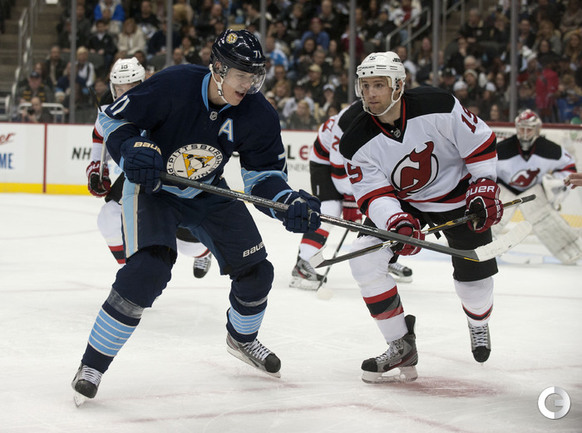 НХЛ. Регулярный чемпионат. Питтсбург. "Питтсбург" - "Нью-Джерси" - 1:3. Голы: Кларксон - 8 (Энрик), 13:06 (0:1). КОВАЛЬЧУК - 4 (Матто), 31:27 (0:2). Кларксон - 9 (Элиаш, Жидлицки), 33:20 (0:3 - бол.). Дж. Нил - 8 (Кунитц, МАЛКИН), 40:15 (1:3 - бол.). Фото AFP, nhl.com