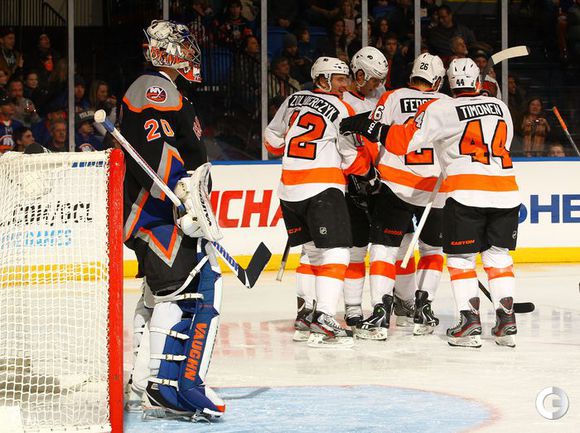 НХЛ. Регулярный сезон. "Айлендерс " - "Филадельфия" - 0:7. Голы: Жиру - 4 (Рид, Ворачек), 0:26 (0:1). Рид - 7 (Жиру, Ворачек), 20:15 (0:2). Шенн - 4 (Ворачек, Бриер), 27:57 (0:3 - бол.). Жиру - 5 (Рид, Ворачек), 34:45 (0:4). Риналдо - 1 (Золнирчук,Л. Шенн), 43:31 (0:5). Бриер - 4 (Кутюрье, Густафссон), 50:27 (0:6 - бол.). Бриер - 5 (Б. Шенн, Симмондс), 57:46 (0:7). Фото AFP