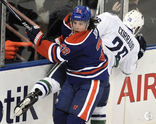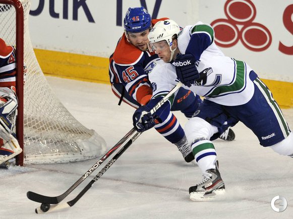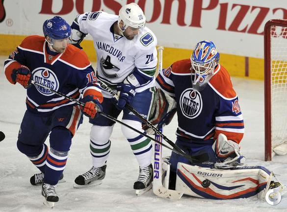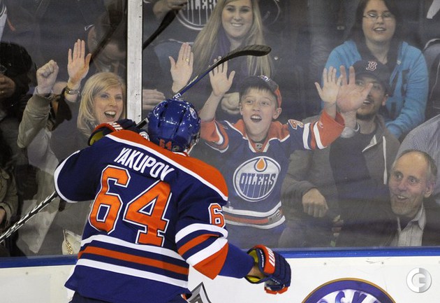 Хоккей. НХЛ. Регулярный чемпионат. "Эдмонтон" – "Ванкувер" – 7:2 (0:1, 1:0, 6:1). Голы: Рой – 7 (Хансен, Рэймонд), 17:16 (0:1 – бол.). Эберле – 15 (Шульц, Шульц), 38:40 (1:1). Якупов – 15 (Шульц, Ганье), 42:21 (2:1 – бол.). Сестито – 3 (Бекса, Кассиан), 43:41 (2:2). Шульц – 8 (Холл, Фистрик), 53:17 (3:2). Якупов – 16 (Пяйярви-Свенссон), 54:16 (4:2). Эберле – 16 (Холл, Шульц), 54:37 (5:2). Якупов – 17 (Фистрик, Пяйярви-Свенссон), 55:47 (6:2). Смитсон – 3 (Джонс, Смит), 56:52 (7:2). Сделав хет-трик в матче Наиль Якупов стал лучшим снайпером среди новичков в сезоне. Фото REUTERS