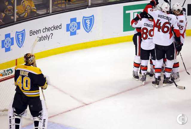 НХЛ. Регулярный чемпионат. "Бостон" – "Оттава" – 2:4 (0:1, 1:1, 1:2). Голы: Кондра – 4 (Пажо, Конахер), 16:59 (0:1). Коуэн – 1 (Террис, ГОНЧАР), 30:33 (0:2). Певерли – 6 (Редден, Зайденберг), 39:56 (1:2 – бол.). Зайденберг – 4 (Лучич, Даугавиньш), 40:14 (2:2). Пажо – 2 (Мето, Э. Карлссон), 56:26 (2:3). Террис – 12 (Э. Карлссон, Альфредссон), 59:23 (2:4 – п.в.). Фото REUTERS
