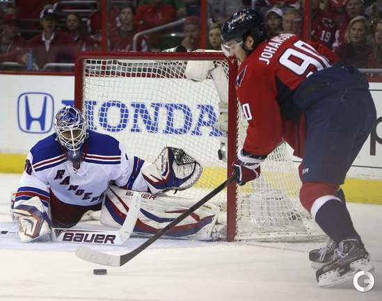 НХЛ. Плей-офф. 1/8 финала. Восточная конференция. Второй матч. "Вашингтон" - "Рейнджерс" - 1:0 ОТ (0:0, 0:0, 0:0, 1:0). Гол: Грин - 1 (Рибейро, ОВЕЧКИН), 68:00 (1:0 - бол.). Фото AFP, REUTERS