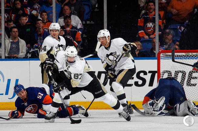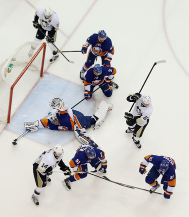 Хоккей. НХЛ. Кубок Стэнли. 1/8 финала. Четвертый матч. "Айлендерс" – "Питтсбург" – 6:4. Голы: Б. Штрайт – 1 (Вишновски, Чижикас), 14:05 (1:0). Дж. Нил – 1 (МАЛКИН, Игинла), 14:50 (1:1). М. Штрайт – 1 (Хэмоник, Бойз), 26:19 (2:1 – бол.). МАЛКИН – 2 (Игинла, Флери), 27:17 (2:2). Бран. Саттер – 1 (Б. Морроу, Кук), 31:03 (2:3). К. Окпосо – 3 (Хэмоник, М. Штрайт), 38:36 (3:3). Дюпюи – 4 (Кунитц, Кросби), 40:41 (3:4). М. Штрайт – 2 (Чижикас, Бойз), 44:30 (4:4). Таварес – 2 (Бойз), 50:11 (5:4). Чижикас – 2 (Грабнер, К. Макдональд), 58:44 (6:4). Фото AFP, REUTERS
