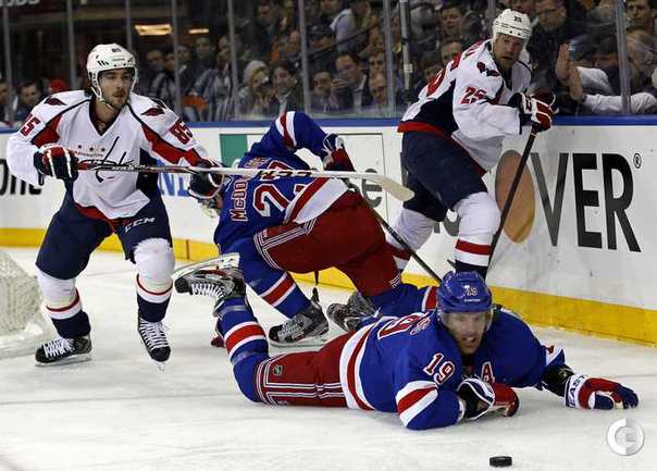 Хоккей. НХЛ. Кубок Стэнли. 1/8 финала. Четвертый матч. "Рейнджерс" – "Вашингтон" – 4:3 (1:0, 1:2, 2:1). Голы: Ричардс – 1 (Хагелин, Пайэтт), 16:25 (1:0). Хагелин – 2 (Брассар, Клоу), 30:13 (2:0). Перро – 1 (Уорд, Чимера), 33:08 (2:1). Брауэр – 1 (Грин), 39:42 (2:2). Джирарди – 1 (Брассар, Цуккарелло-Осен), 40:59 (3:2 – бол.). Степан – 2 (Хагелин, Кэллахэн), 46:02 (4:2). Перро – 2 (Алзнер, Уорд), 47:31 (4:3). Фото REUTERS