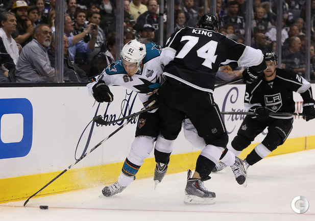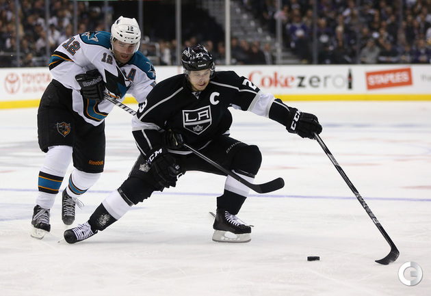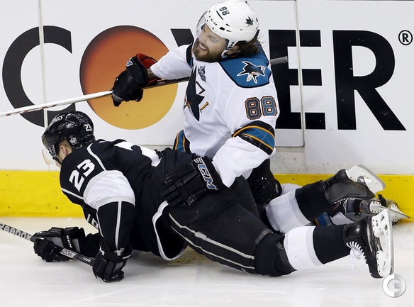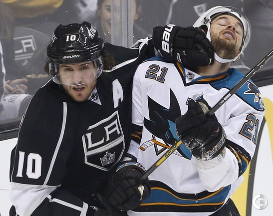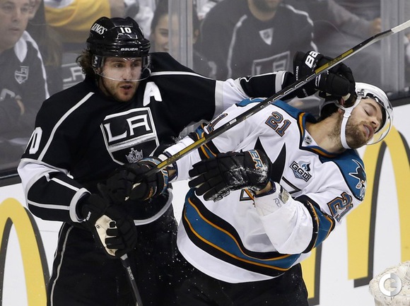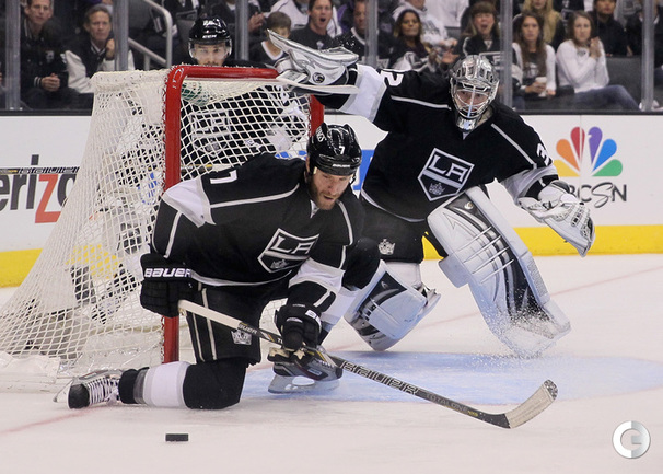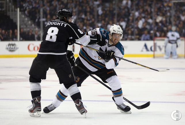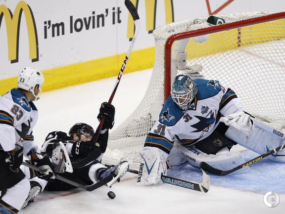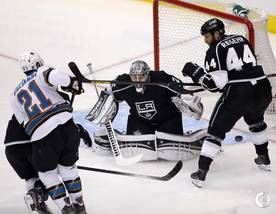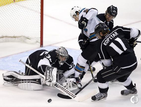 Хоккей. НХЛ. Кубок Стэнли. 1/4 финала. Первый матч. "Лос-Анджелес" – "Сан-Хосе" – 2:0 (1:0, 1:0, 0:0). Голы: ВОЙНОВ – 3 (М. Ричардс, Дж. Картер), 19:47 (1:0). М. Ричардс – 1 (ВОЙНОВ, Скудери), 32:30 (2:0). В первом матче второго раунда Кубка Стэнли "Лос-Анджелес" на своем льду обыграл "Сан-Хосе" (2:0). Российский защитник "Королей" Вячеслав Войнов отметился шайбой и результативной передачей и был признан второй звездой встречи. Фото AFP и REUTERS