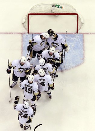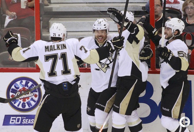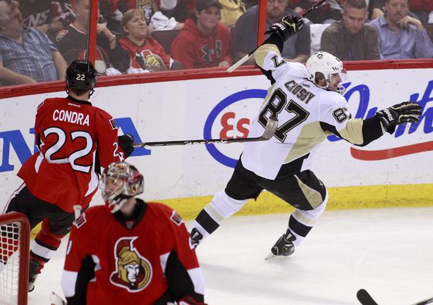 НХЛ. Кубок Стэнли. 1/4 финала. Четвертый матч. "Оттава" – "Питтсбург" – 3:7 (2:1, 0:2, 1:4). Голы: Михалек – 2 (Альфредссон, Бенуа), 02:29 (1:0 – мен.). Дж. Нил – 2, 14:56 (1:1). Террис – 5 (Сильверберг, Э. Карлссон), 16:15 (2:1). Кунитц – 4 (Дюпюи, Летанг), 21:08 (2:2). Игинла – 3 (Летанг, Дж. Нил), 21:48 (2:3). Дж. Нил – 3 (Кросби, Летанг), 41:59 (2:4 – бол.). Дюпюи – 7 (Кук), 48:08 (2:5 – мен.). Кросби – 7 (Кеннеди), 48:39 (2:6). Игинла – 4 (Ю. Йокинен, Летанг), 49:53 (2:7 – бол.). Альфредссон – 4 (Э. Карлссон, К. Нил), 54:44 (3:7). Фото AFP, REUTERS