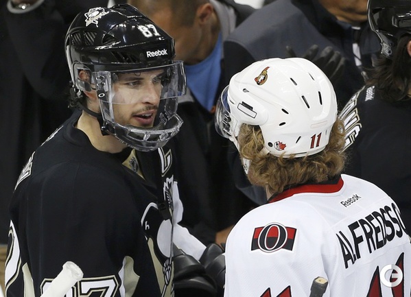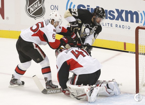 Хоккей. НХЛ. Кубок Стэнли. 1/4 финала. Пятый матч. "Питтсбург" – "Оттава" – 6:2. Голы: Б. Морроу – 2 (Итон, Кук), 06:25 (1:0). Дж. Нил – 4 (Летанг, Кросби), 27:38 (2:0 – бол.). Летанг – 3 (Кеннеди, Орпик), 32:48 (3:0). Михалек – 3 (Спецца, Террис), 36:18 (3:1). МАЛКИН – 4 (Дж. Нил), 39:30 (4:1). Дж. Нил – 5, 51:07 (5:1). Террис – 6 (Коуэн, Грининг), 53:32 (5:2). Дж. Нил – 6 (МАЛКИН, Летанг), 57:21 (6:2). Фото REUTERS