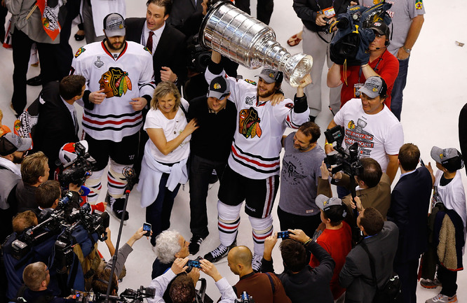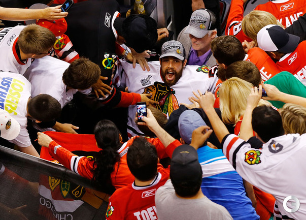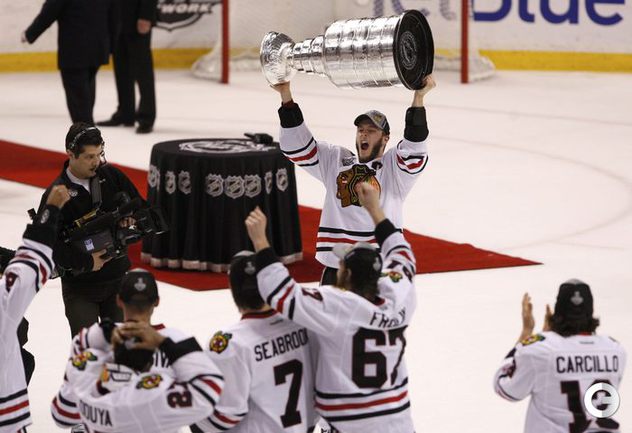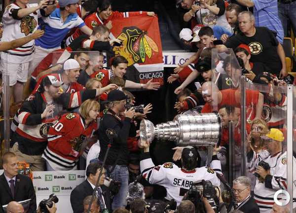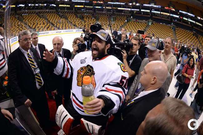 НХЛ. Кубок Стэнли. Финал. Шестой матч. "Бостон" – "Чикаго" – 2:3. "Чикаго" в шестом матче финальной серии плей-офф НХЛ обыграл "Бостон" и стал обладателем Кубка Стэнли-2013. Победная шайба на счету нападающего Дэйва Болланда – он поразил ворота Туукки Раска за 59 секунд до финального свистка. Для "Чикаго" это пятый Кубок Стэнли в истории команды. Фото AFP, REUTERS