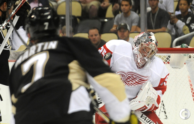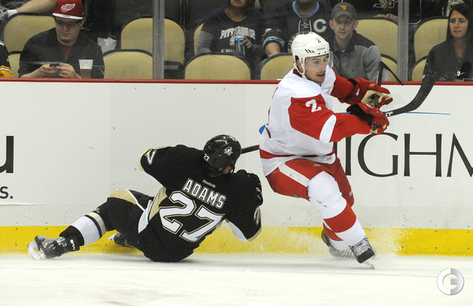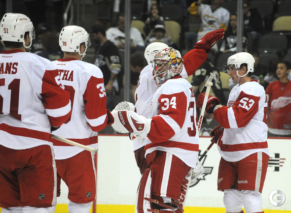 НХЛ. Выставочный матч. "Питтсбург" – "Детройт" – 1:4 (0:1, 1:3, 0:0). Голы: Татар (Ферраро), 12:56 – 0:1. Суттер (Коннер, П. Мартин), 21:05 – 1:1. Алмквист (Б. Смит, Татар), 26:10 – 1:2. Алмквист (Самуэльссон, ДАЦЮК), 31:50 – 1:3. ДАЦЮК – 37:59 – 1:4. Фото AFP