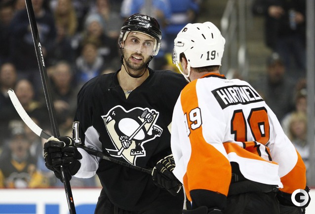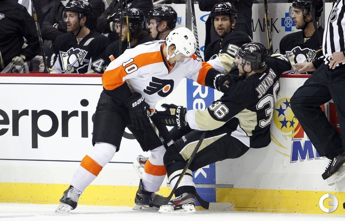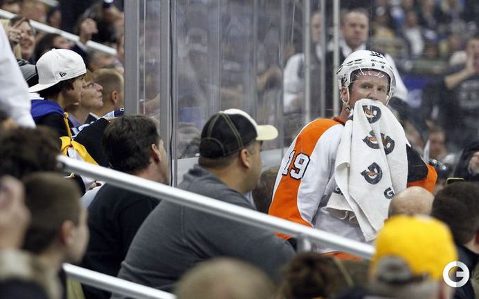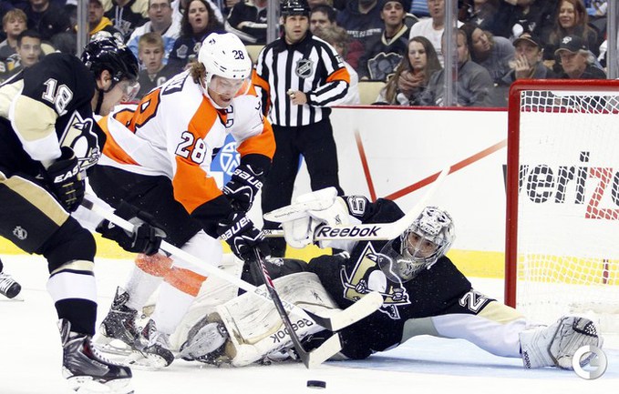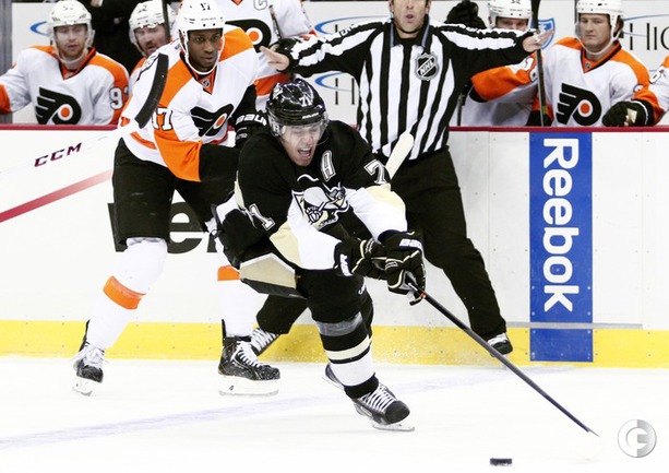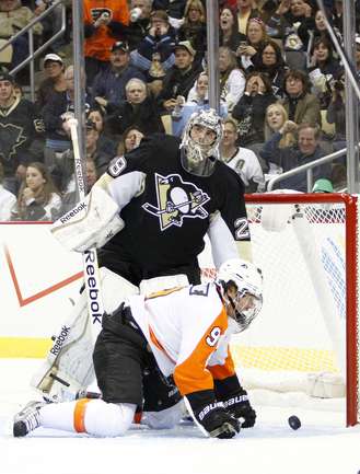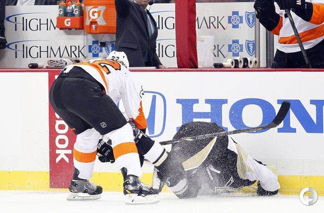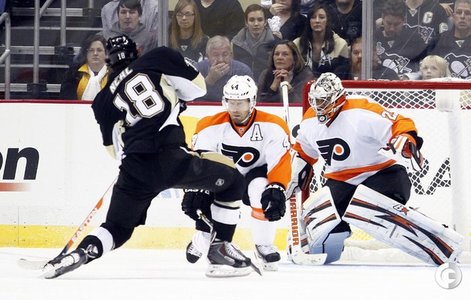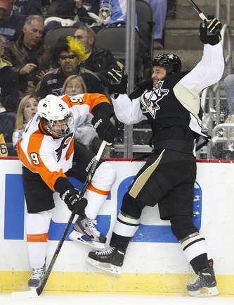 НХЛ. Регулярный чемпионат. "Питтсбург" – "Филадельфия" – 1:2 (0:1, 1:1, 0:0). Голы: Брэйден Шенн – 5 (Симмондс), 16:02 – 0:1. Кросби – 9 (бол., МАЛКИН, Ю. Йокинен), 28:29 – 1:1. Брэйден Шенн – 6 (бол., Дауни, Ворачек), 58:40 – 1:2. Фото AFP