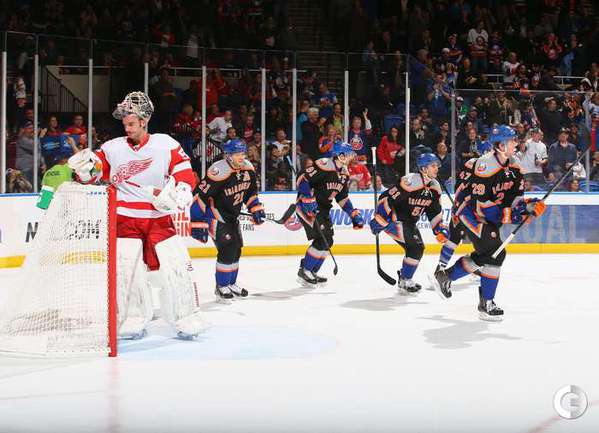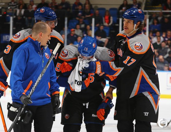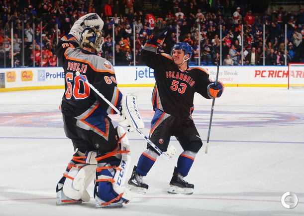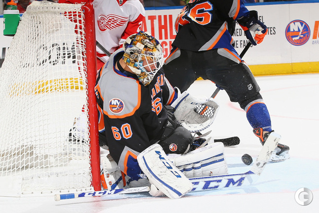 Хоккей. НХЛ. Регулярный чемпионат. "Айлендерс" – "Детройт" – 5:4 Б (1:2, 2:1, 1:1, 0:0, 1:0). Голы: Таварес – 9 (Бэйли), 4:03 – 1:0. Хелм – 2 (Эрикссон, Кронвалль), 4:12 – 1:1. Дацюк – 10 (бол., Самуэльссон, Зеттерберг), 17:18 – 1:2. Чижикас – 2 (Макдональд, Мартин), 37:50 – 2:2. Францен – 5 (Хелм, Татар), 38:23 – 2:3. Нельсон – 3 (бол., Таварес, Макдональд), 39:10 – 3:3. Клаттербак – 2 (Бушар, Несс), 44:43 – 4:3. Дацюк – 11 (Дикейсер, Зеттерберг), 59:17 – 4:4. Победный буллит: Нильсен. Российский вратарь "Айлендерс" Евгений Набоков получил травму паха в матче с "Детройтом" (5:4 Б). Кандидат в олимпийскую сборную России был заменен уже на 5-й минуте первого периода и смог покинуть лед только при помощи врача. Нападающий "Детройта" Павел Дацюк забросил в ворота "Айлендерс" две шайбы. Фото AFP