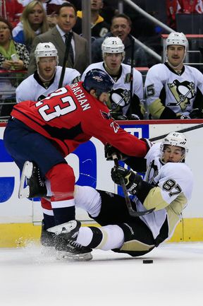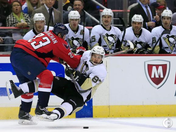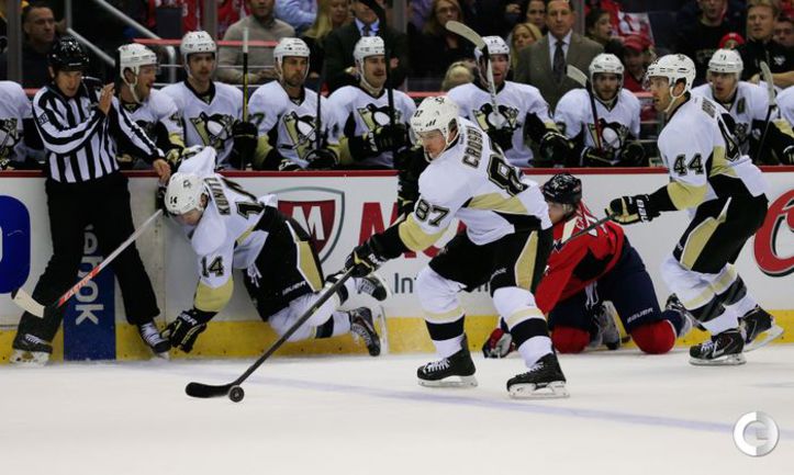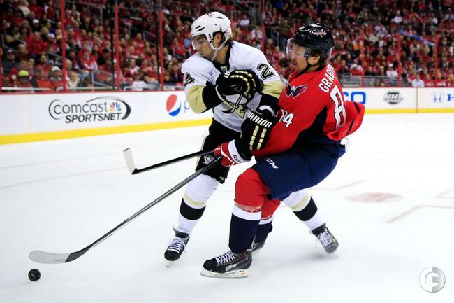 В матче регулярного чемпионата НХЛ "Питтсбург" на выезде крупно обыграл "Вашингтон" (4:0). Российский нападающий "Пинвгинов" Евгений Малкин отметился двумя результативными передачами (всего в сезоне – 19). Фото AFP