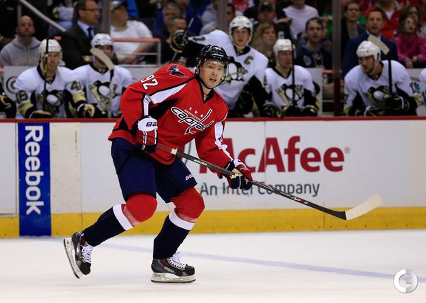 В матче регулярного чемпионата НХЛ "Вашингтон" дома уступил "Питтсбургу" (2:3). Свою дебютную игру в составе "Столичных" провел российский нападающий Евгений Кузнецов. Фото AFP