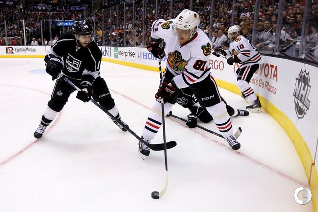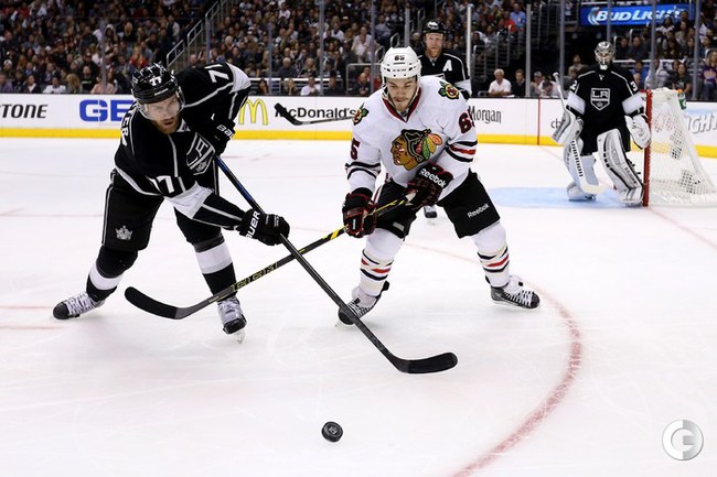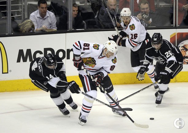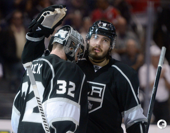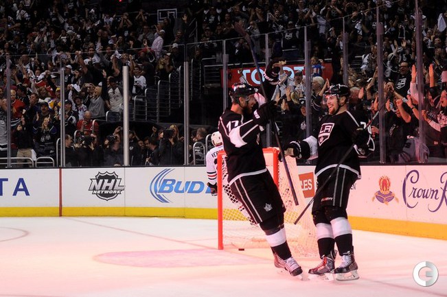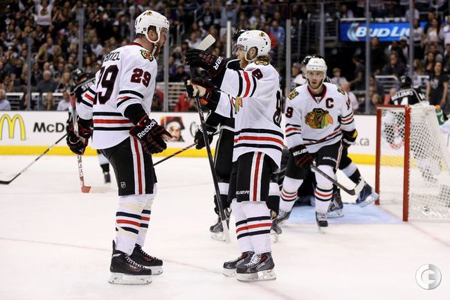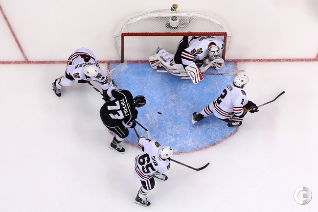 НХЛ. Плей-офф. 1/2 финала. Четвертый матч. "Лос-Анджелес" – "Чикаго" – 5:2 (3:0, 1:1, 1:1). Голы: Маззин – 5, 09:00 – 1:0. Габорик – 10, 11:13 – 2:0. Д. Браун – 3, 15:56 – 3:0. Даути – 3, 32:43 – 4:0. Саад – 4, 34:03 – 4:1. Биккель – 7, 49:29 – 4:2. Пирсон – 3, 58:58 – 5:2. Счет в серии: 3-1. Фото AFP и REUTERS