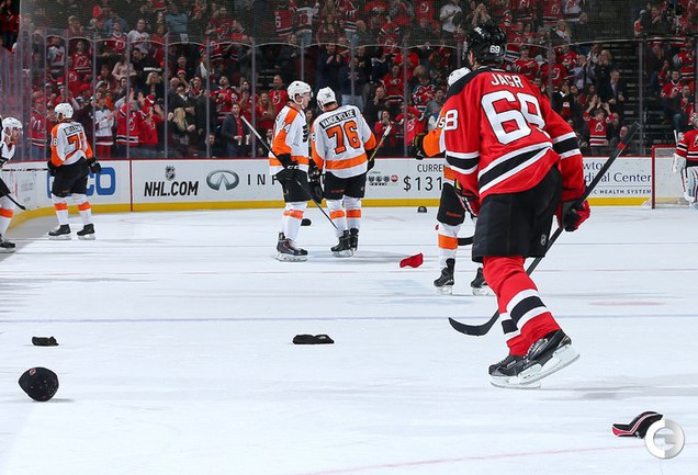 Нападающий "Нью-Джерси" Яромир Ягр стал самым возрастным игроком в истории НХЛ, который оформил хет-трик. Он отличился тремя заброшенными шайбами в матче регулярного чемпионата с "Филадельфией" (5:2). На момент игры ему было 42 года и 322 дня. Фото AFP