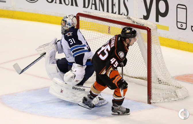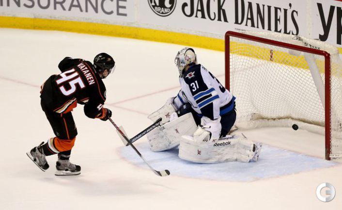 НХЛ. Регулярный чемпионат. "Анахайм" – "Виннипег" – 5:4 Б (1:3, 1:1, 2:0, 0:0, 1:0). Голы: Кейн – 7 (Лаури, Энстрем), 7:47 – 0:1. Ракелль – 2 (бол., Палмьери), 8:33 – 1:1. Богосян – 2 (Фролик, Шейфел), 9:49 – 1:2. Шейфел – 7 (Перро, Байфульен), 14:36 – 1:3. Джэкмэн – 3 (Кольяно, Ракелль), 33:38 – 2:3. Лэдд – 16 (Уилер, Литтл), 37:42 – 2:4. Палмьери – 7 (бол., Ракелль, Ватанен), 46:25 – 3:4. Ракелль – 3 (Марун), 57:57 – 4:4. Победный буллит: Ватанен. Перед началом встречи "Анахайм" провел церемонию вывода из обращения 8-го игрового номера, под которым в клубе на протяжении семи сезонов выступал нападающий Теему Селянне. Фото AFP