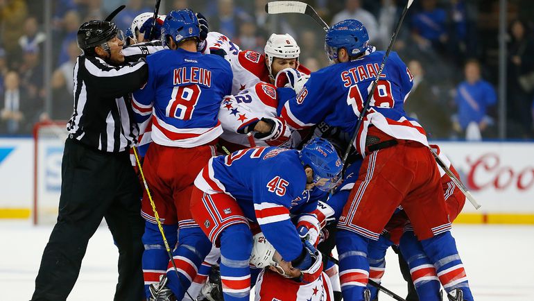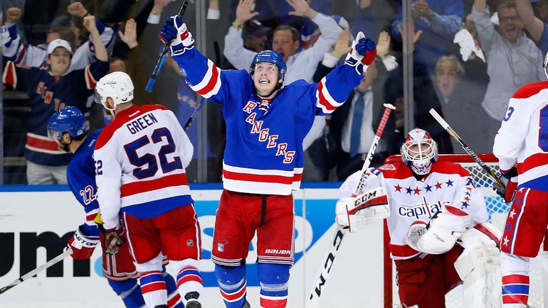 НХЛ. Плей-офф. 1/4 финала. Первый матч. "Рейнджерс" – "Вашингтон" – 1:2 (0:1, 0:0, 1:1). Голы: ОВЕЧКИН - 3 (бол., Карлсон, Холтби), 18:13 - 0:1. Фаст - 1 (Хэйс, Хагелин), 55:21 - 1:1. Уорд - 2 (ОВЕЧКИН, Бэкстрем), 59:58 - 1:2. Фото AFP