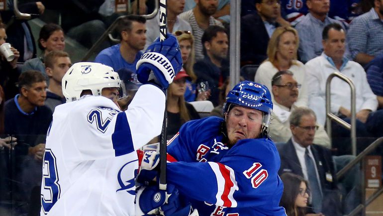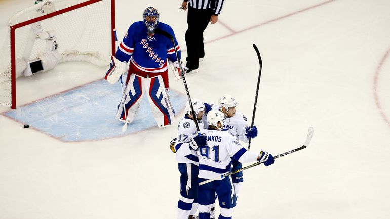 НХЛ. Плей-офф. 1/2 финала. Пятый матч. "Рейнджерс" – "Тампа-Бэй" – 0:2 (0:0, 0:2, 0:0). Голы: Филппула – 3 (Стэмкос, Строльман), 33:29 – 0:1. Стэмкос – 7 (бол., Палат, КУЧЕРОВ), 38:22 – 0:2. Фото AFP