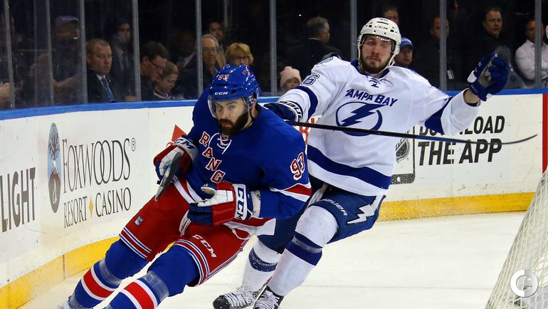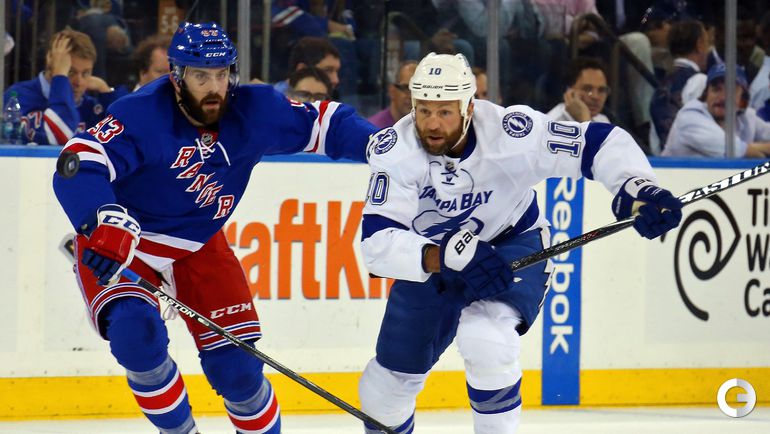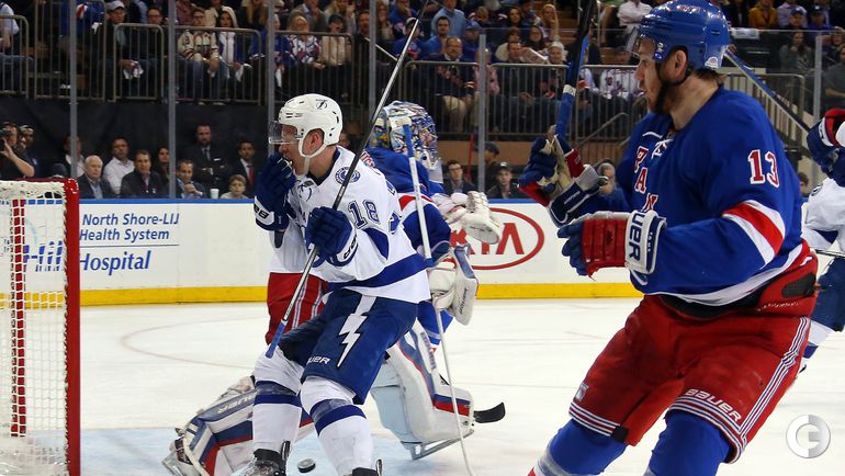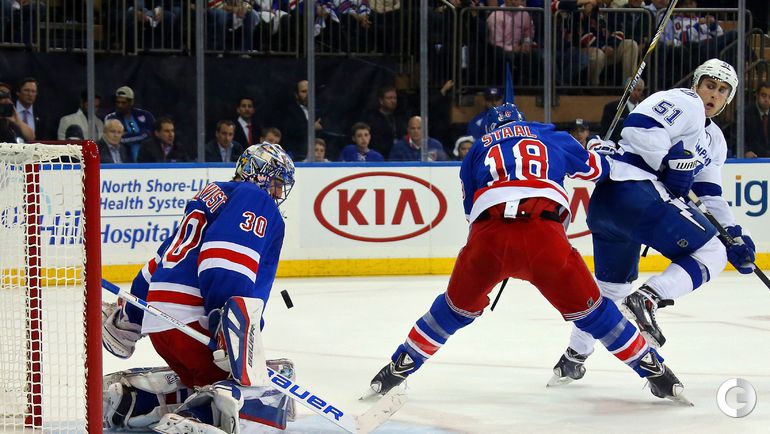 НХЛ. Плей-офф. 1/2 финала. Седьмой матч. "Рейнджерс" – "Тампа-Бэй" – 0:2 (0:0, 0:0, 0:2). Голы: Киллорн - 7 (Карл, Филппула), 41:54 - 0:1. Палат - 7 (Джонсон, Бишоп), 51:17 - 0:2. Фото AFP