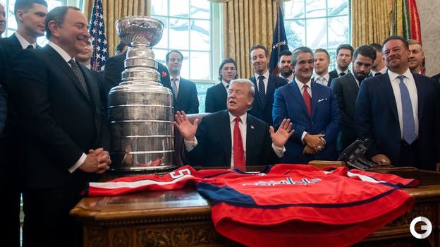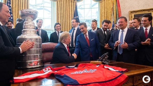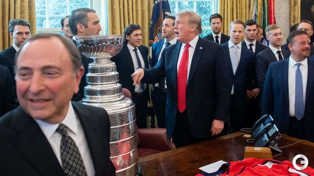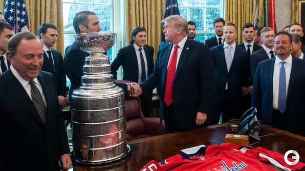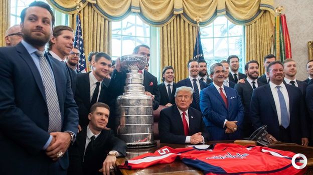 Обладатели Кубка Стэнли из "Вашингтона" встретились в Белом доме с президентом США. Вместе с командой в гостях у Дональда Трампа побывали россияне Александр Овечкин, Евгений Кузнецов, Дмитрий Орлов.