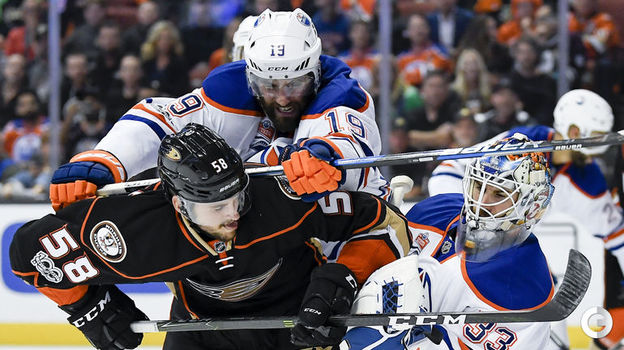 В пятом матче 1/4 финала Кубка Стэнли "Анахайм" во втором овертайме обыграл "Эдмонтон" со счетом 4:3. Победную шайбу забросил нападающий Кори Перри. "Дакс" повели в серии – 3-2. Команда Рэнди Карлайла уступала по ходу встречи со счетом 0:3. "Анахайм" смог отыграть три шайбы за 4 минуты до конца основного времени, сняв вратаря.