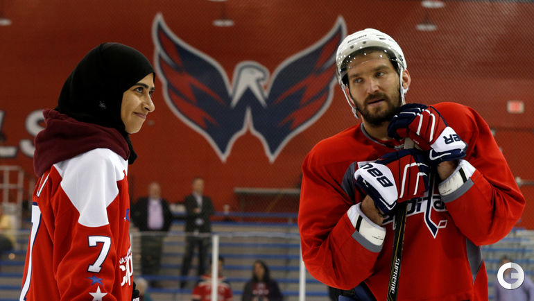Овечкин сыграл в хоккей с арабской хоккеисткой