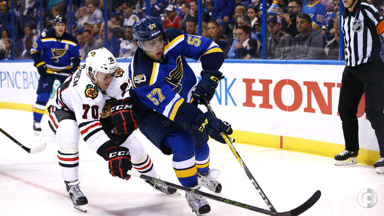 "Сент-Луис" – "Чикаго" – 1:2 ОТ (0:0, 0:1, 1:0, 0:1). Голы: Хосса – 7 (Форслинг, ПАНАРИН), 21:22 – 0:1. Пьетранджело – 3 (Шварц, ТАРАСЕНКО), 57:49 – 1:1. ПАНАРИН – 6 (Сибрук, Кейн), 60:25 – 1:2. Вратари: Аллен – Кроуфорд. Штраф: 17 – 13. Броски: 28 (8+8+12+0) – 30 (6+9+14+1). Наши: Тарасенко (18:36/4/0) – Анисимов (8:42/0/+1), Панарин (17:00/6/+2).
