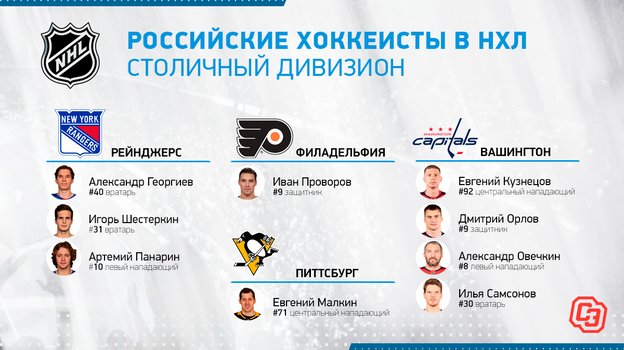 Больше всего наших — по четыре — в «Вашингтоне» и «Сент-Луисе». У «Кэпиталз» это капитан Александр Овечкин, еще один форвард Евгений Кузнецов, защитник Дмитрий Орлов и вратарь Илья Самсонов. У «Блюз» в составе только нападающие — два чемпиона-2019 Иван Барбашев и искавший обмена и оставшийся Владимир Тарасенко, а также Клим Костин и экс-игрок «Рейнджерс» Павел Бучневич.