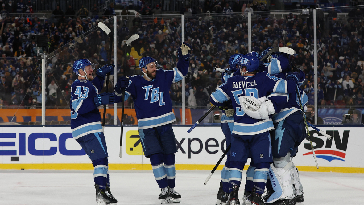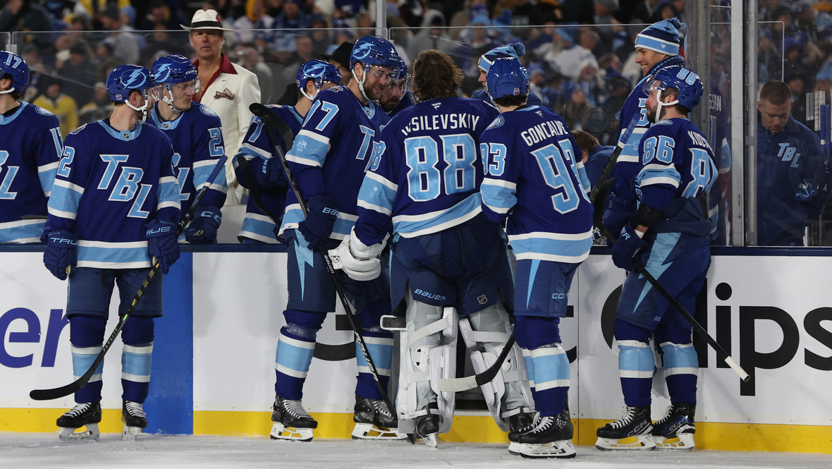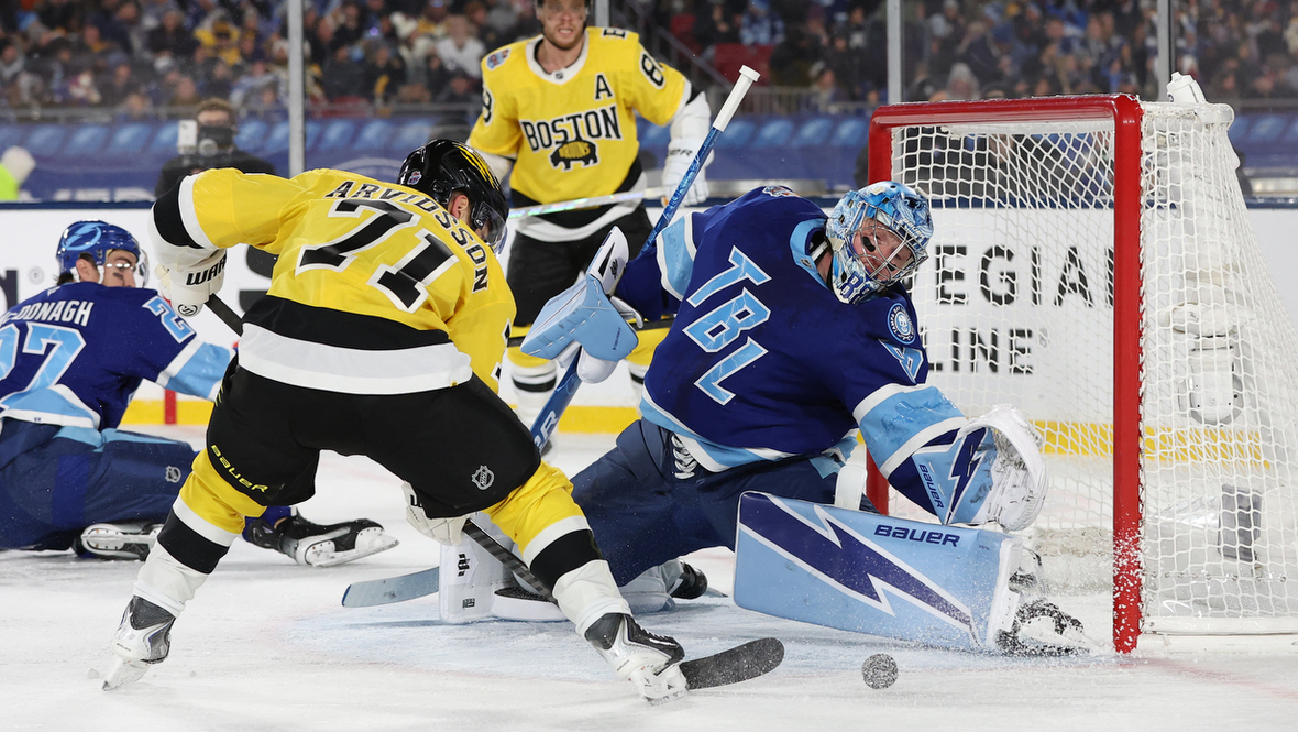 Вратарь «Тампа-Бэй» Андрей Василевский подрался с голкипером «Бостона» Джереми Суэйменом в домашнем матче регулярного чемпионата НХЛ. Игра «Стадионной серии» прошла на арене местного клуба НФЛ.