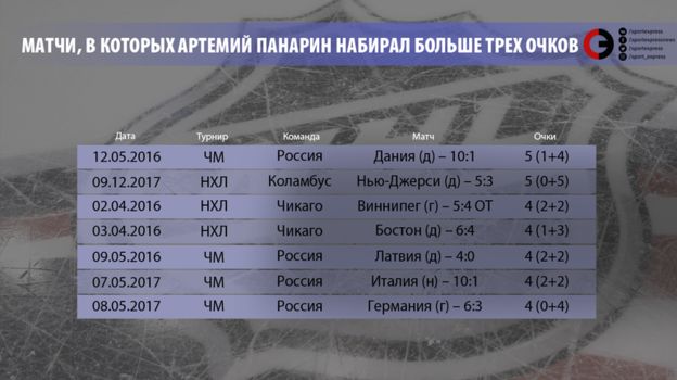 Матчи, в которых Артемий Панарин набирал больше трех очков. Фото "СЭ"