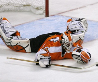 Чудеса, которыми изобилует в этом году плей-офф в Восточной конференции, продолжаются и в ее финале. "Филадельфия", большую часть сезона мучавшаяся со своей вратарской линией, уже второй матч Кубка Стэнли играет "на ноль". И как! Майкл Лейтон, который вряд ли стал бы основным голкипером, не травмируйся Брайан Буше, отразил 30 бросков по своим воротам и вновь был признан лучшим игроком встречи. Благодаря своему вратарю "Флайерз" впервые с 1995 года выиграли шесть подряд матчей плей-офф.
