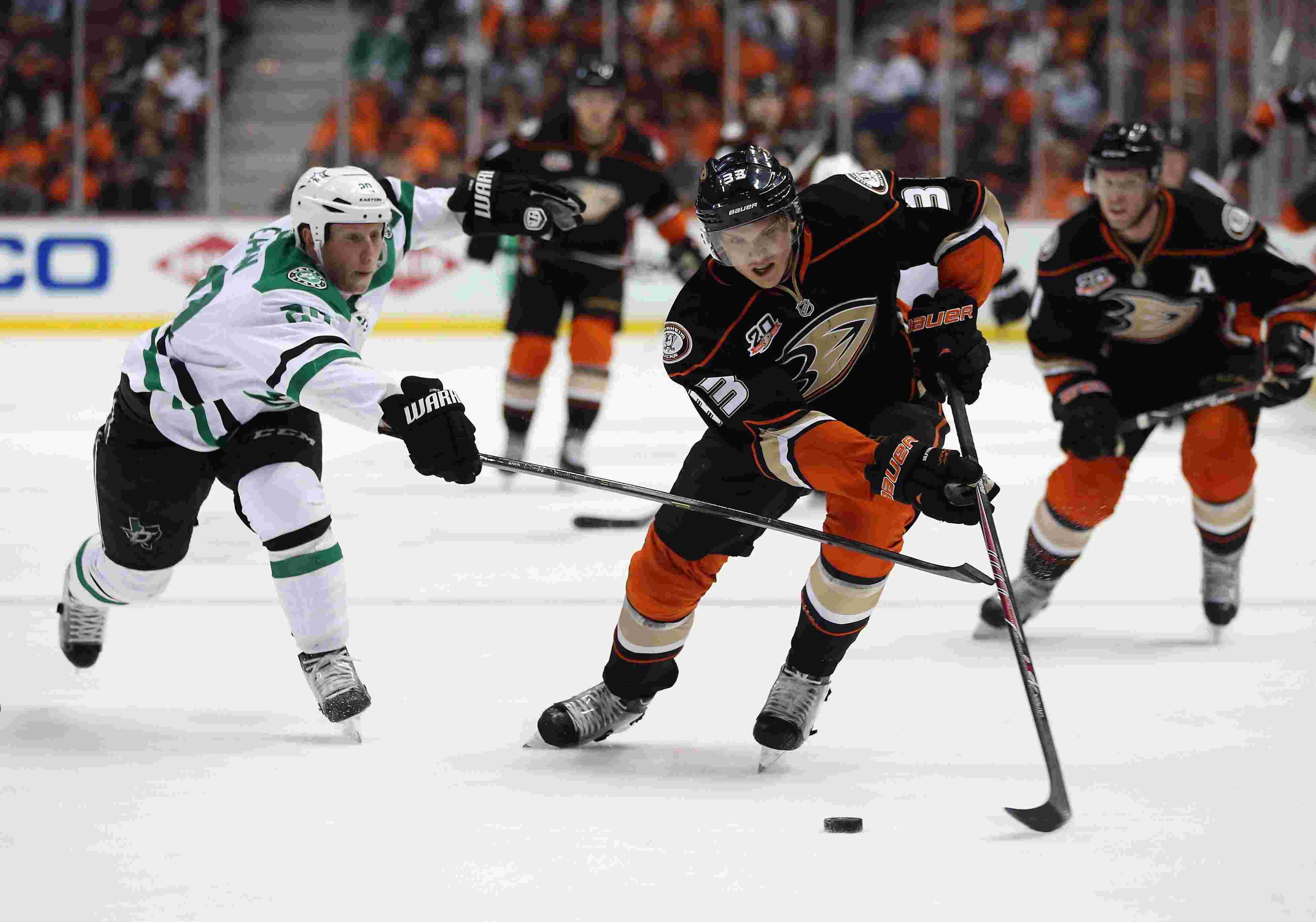 "Анахайм" не без труда выиграл стартовый матч серии против "Далласа", хотя к середине второго периода имел комфортное преимущество в четыре шайбы. Техасцы смогли взвинтить темп, и за 7 минут до конца основного времени сократили разрыв в счете до минимума, обеспечив хозяевам очень нервную концовку. В результате финального штурма "Старз" болезненную травму получил лидер "Анахайма" Райан Гецлаф, которому шайба после щелчка Тайлера Сегина прилетела прямо в лицо, но победный счет "Утки" отстояли.