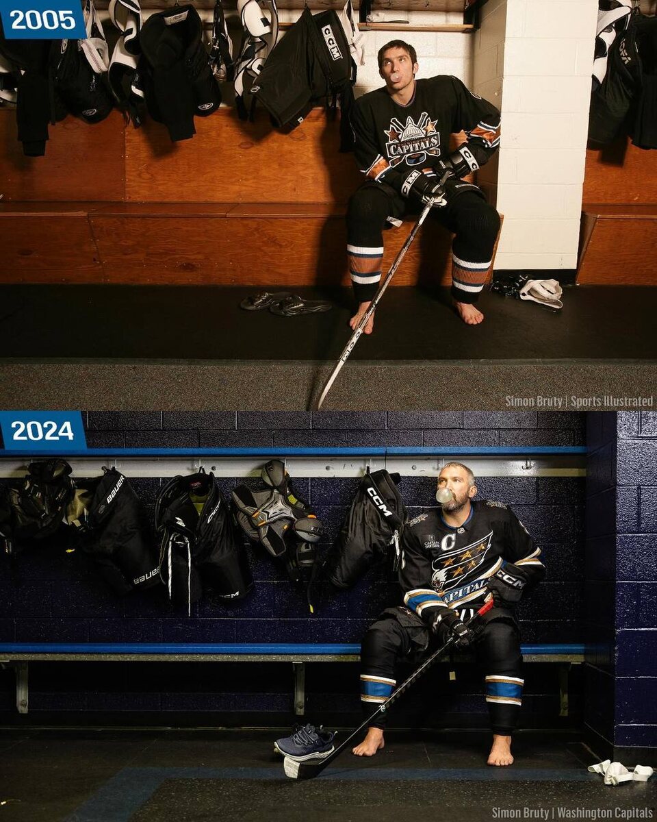 Александр Овечкин перед открытием тренировочного лагеря «Кэпиталз» отметил 39-летие. Российский форвард получил в качестве подарка клубный черно-синий свитер — в подобном он дебютировал в лиге осенью 2005 года и теперь снова сможет выйти на лед. «Спасибо за сюрприз», — улыбнулся капитан. Заодно медиаслужба вашингтонцев повторила известное фото Ови в этой форме: игрок разместился на скамейке раздевалки с клюшкой без коньков и с помощью жвачки надул пузырь.