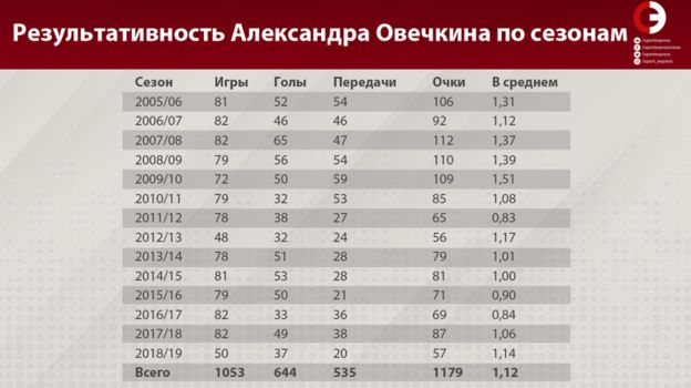 В 50 матчах текущего чемпионата Овечкин набрал 57 очков, демонстрируя лучший график результативности за последние шесть лет – 1,12 балла за игру. После завершившего мощнейшую стартовую пятилетку сезона-2009/10 Александр только однажды прошелся по лучшему графику. Случилось это в локаутном 2012-м году. За 48 встреч укороченного сезона Овечкин тогда набрал 56 очков.