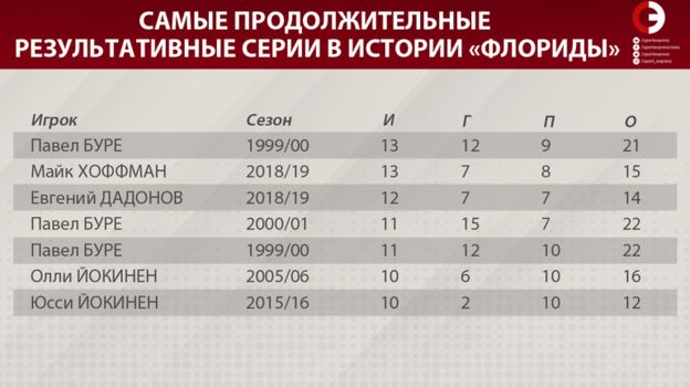 Самые продолжительные результативные серии в истории "Флориды". Фото "СЭ"