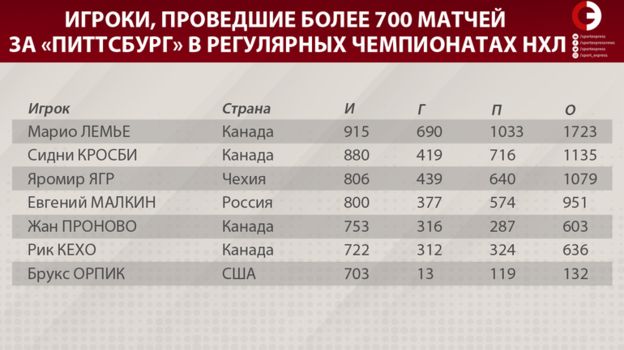 Игроки, проведшие более 700 матчей за "Питтсбург" в регулярных чемпионатах НХЛ. Фото "СЭ"