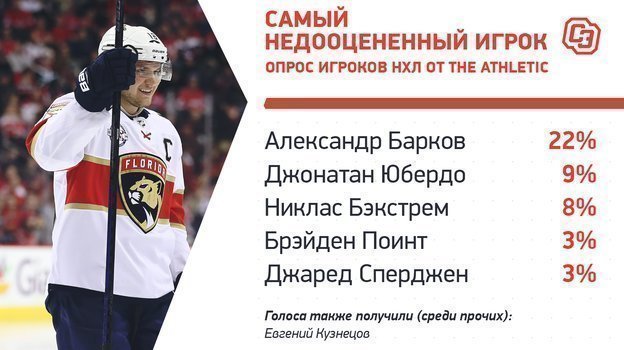 В число часто упоминаемых хоккеистов вне топ-5 попали еще два россиянина — Александр Радулов и Артемий Панарин. И самый недооцененный игрок лиги, русский финн Барков тоже здесь.
