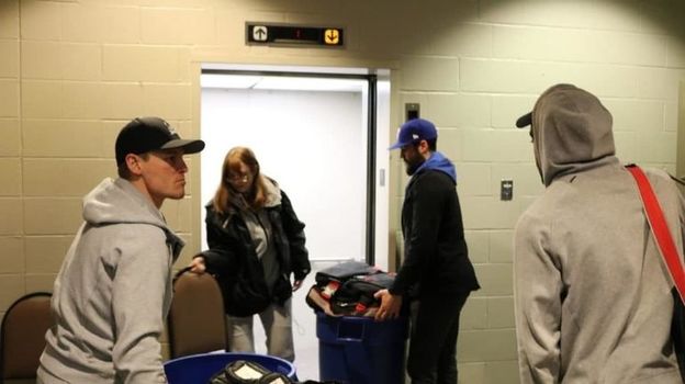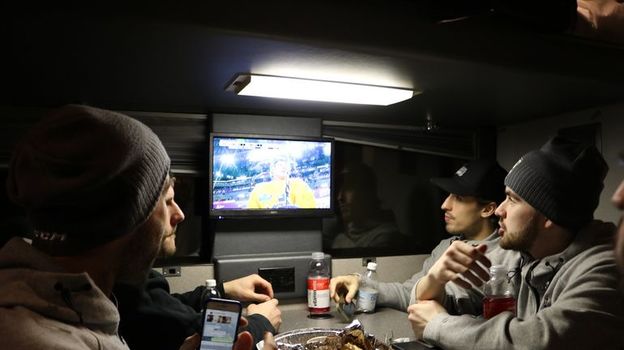 Игроки, выгружающие и загружающие свои вещи на морозе посреди ночи. Трясущиеся руки от холода и голода.