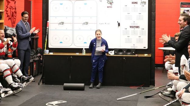 Так что, когда дочурка Колина, 9-летняя Капри, примчалась на арену после игры своей хоккейной команды, "Итобикоук Долфинз", в которой она сделала дубль, и попросила отца позволить ей огласить стартовую пятерку, Чок с радостью уступил ей эту честь.