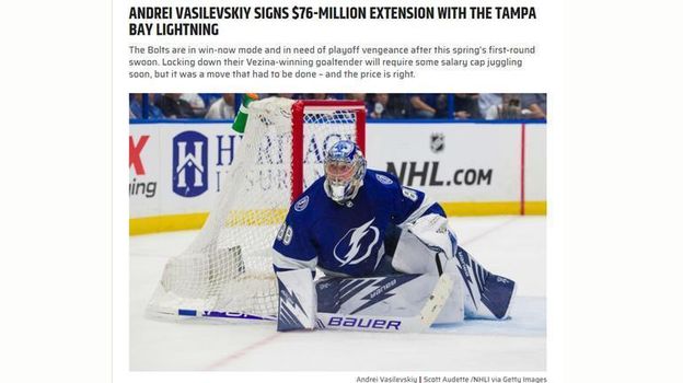 Новый контракт Василевского вступит в силу в сезоне-2020/21. На этот момент в лиге будет шесть стражей ворот, которые подписали долгосрочные контракты в то время, когда им не было еще 30 лет. Два из этих вратаря выигрывали Кубок Стэнли. Остальные… нет.