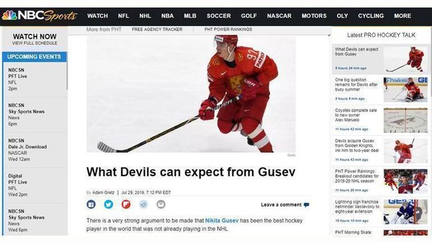 NBC: "Гусев был лучшим игроком в мире за пределами НХЛ"