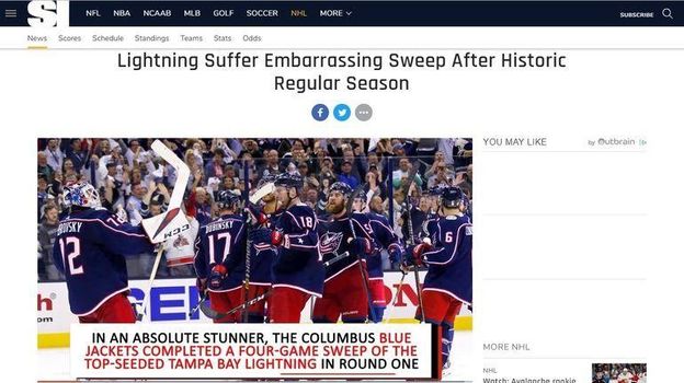 Прекрасный сезон разрушился о кирпичную стену под названием "Коламбус Блю Джекетс". Величайший провал в истории спорта Тампы. Без шансов.
