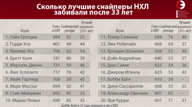 Овечкину уже 33. В таком возрасте суперзвезды НХЛ много не забивали