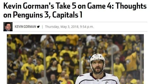 Алекс Овечкин находился на льду, когда Джейк Гюнтцель поражал пустые ворота "Вашингтона" и оформлял победу "Питтсбурга" в четвертом матче серии. Это был второй гол Джейка в игре и его седьмой бросок по воротам. Овечкин же в этот вечер ни разу не побеспокоил вратаря соперников. Это первая столь блеклая игра капитана "Кэпитлз" в нынешнем плей-офф.