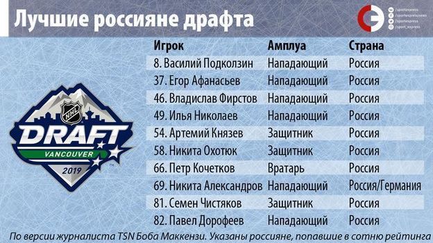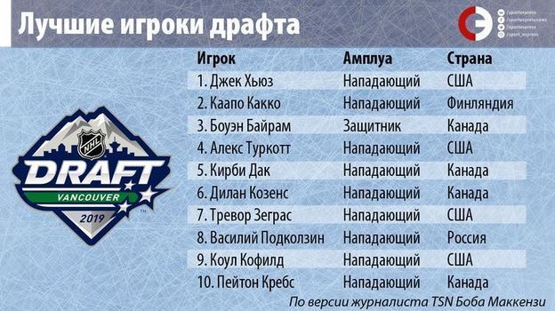 Вот что, к примеру, рассказал мне Кори Пронман из все того же The Athletic, поставивший Василия на 12-е место, при том что в рейтинге Боба Маккензи по результатам опросов клубов НХЛ российский нападающий оказался на 8-м: "Я на самом деле очень ценю Подколзина за те навыки, что у него есть. Он выделяется своим элитным уровнем соревновательности, всегда стараясь доказать свое превосходство, может забить и отдать, хорош по всей длине площадки. Просто есть несколько ребят, которые мне нравятся больше.