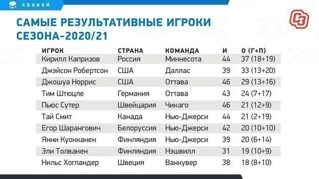 Правда, преимущество Капризова в бомбардирской гонке новичков продолжает сокращаться. Форвард «Далласа» Джейсон Робертсон отстает от Кирилла всего на четыре балла. И это при том, что американец сыграл на пять матчей меньше. При этом Робертсон уже обошел нападающего «Миннесоты» по передачам, а вот по голам Капризов пока держит отрыв.