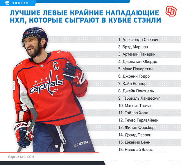 NHL.com определил лучших левых крайних нападающих НХЛ из тех, кто сыграет в квалификации Кубка Стэнли в сериале «Супер 16». Каждый из 13 авторов сайта назвал свои версии топ-16.
