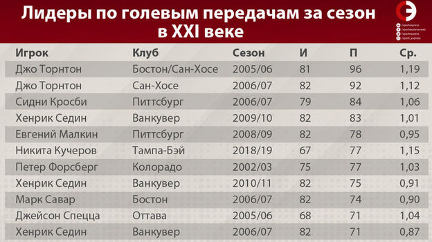Лидеры по голевым передачам за сезон в XXI веке. Фото "СЭ"