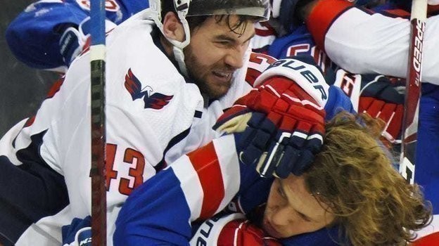 Однако на этом позитивные моменты для «Рейнджерс» закончились. В середине второго периода произошел эпизод, который еще долго будет обсуждаться в спортивных СМИ. Нападающий «Вашингтона» Том Уилсон, уже получавший в этом сезоне семиматчевую дисквалификацию, решил снова взяться за старое. Сперва канадец ударил лежащего на льду Павла Бучневича, а затем атаковал и Панарина.