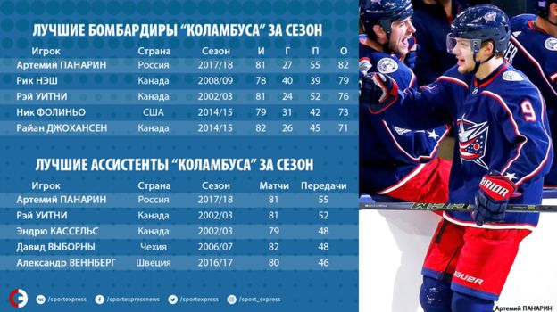 Артемий Панарин среди российских бомбардиров расположился на пятой позиции со скромным по сравнению кучеровским результатом в 82 (27+55) очка. Однако две из этих цифр оказались лучшими не только в трехлетней заокеанской карьере Панарина, но и в 17-летней истории "Коламбуса". По очкам Артемий превзошел Рика Нэша, набравшего в сезоне-2008/09 79 (40+39) баллов, а по передачам Рэя Уитни, 52 раза ассистировавшего партнерам в сезоне-2002/03. Личные достижения образца первого года в "Чикаго" Панарин перебил на пять очков и восемь передач.