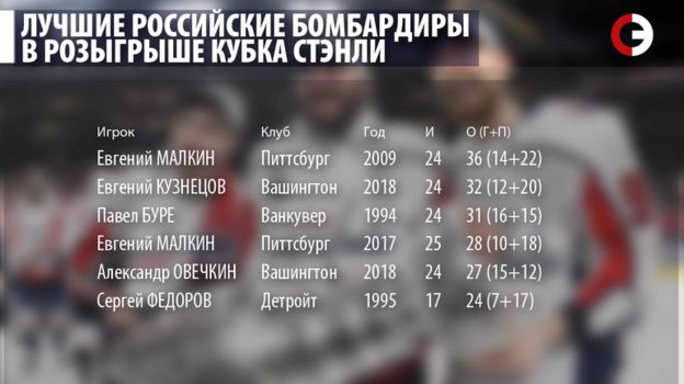 В пятом матче финальной серии Евгений Кузнецов ограничился всего одной результативной передачей. Однако этого ему вполне хватило, чтобы превзойти Павла Буре и показать второй результат среди россиян в одном розыгрыше Кубка Стэнли. От выдающегося показателя Евгения Малкина образца 2009 года Кузнецов отстал на четыре очка.
